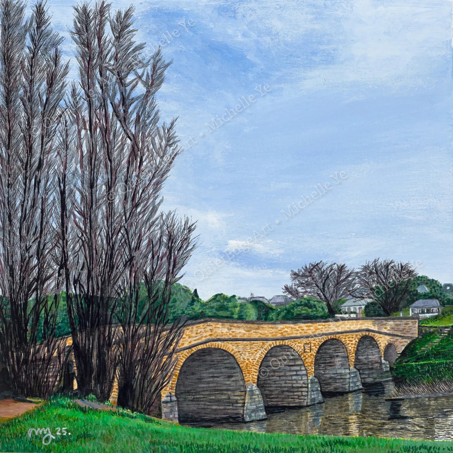 A timeless view of Australia’s oldest stone bridge, built in 1823. The golden sandstone arches reflect across the Coal River, framed by tall poplars and quiet village scenery - a blend of history and calm Tasmanian landscape.