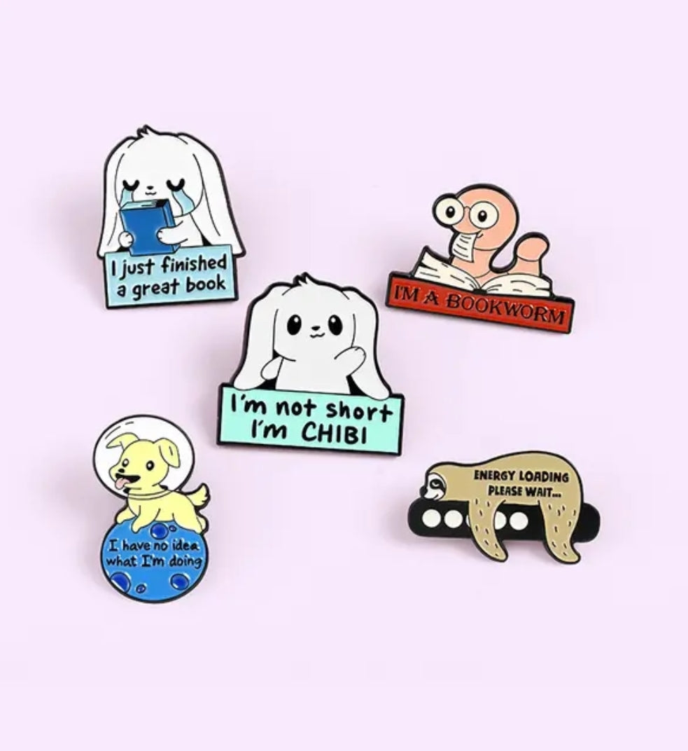 Ces épinglettes sont une façon amusante et unique de montrer votre amour des livres. Notre collection d'épingles présente des animaux avec des motifs de lettrage, parfaits pour tout le monde. Chaque épingle est minutieusement détaillée, fabriquée avec des matériaux durables et des couleurs vives qui s'agenceront parfaitement à n'importe quelle tenue.