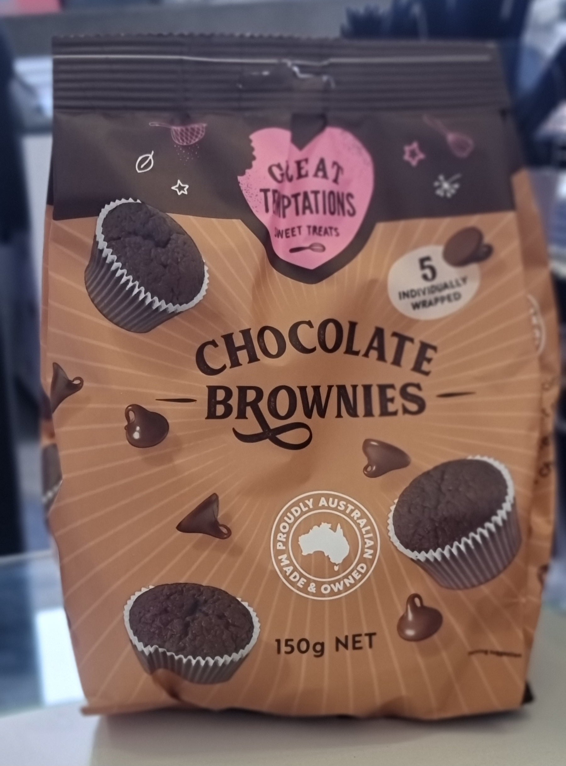 Sugar, Wheat Flour, Vegetable Fat (Vegetable Oils, Water, Salt, Emulsifiers (322(Soy), 471, 472c, 476), Antioxidant (304, 330, 320), Flavour, Colour (160a), Water, Canola Oil, Chocolate Chips (5%) (Sugar, Cocoa Mass, Cocoa Butter, Emulsifer (322 (Soy)), Cocoa Powder, Glucose Syrup, Glycerine, Milk Powder, Whole Egg, Flavour, Salt Preservative (202), Raising Agent(170, 500, 450, 541).