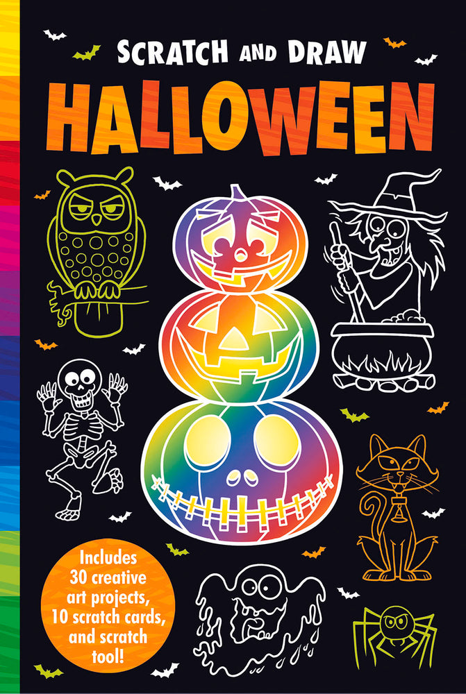 Créez des images effrayantes d'Halloween et des images d'art à gratter en aluminium et arc-en-ciel avec ce livre d'art amusant.