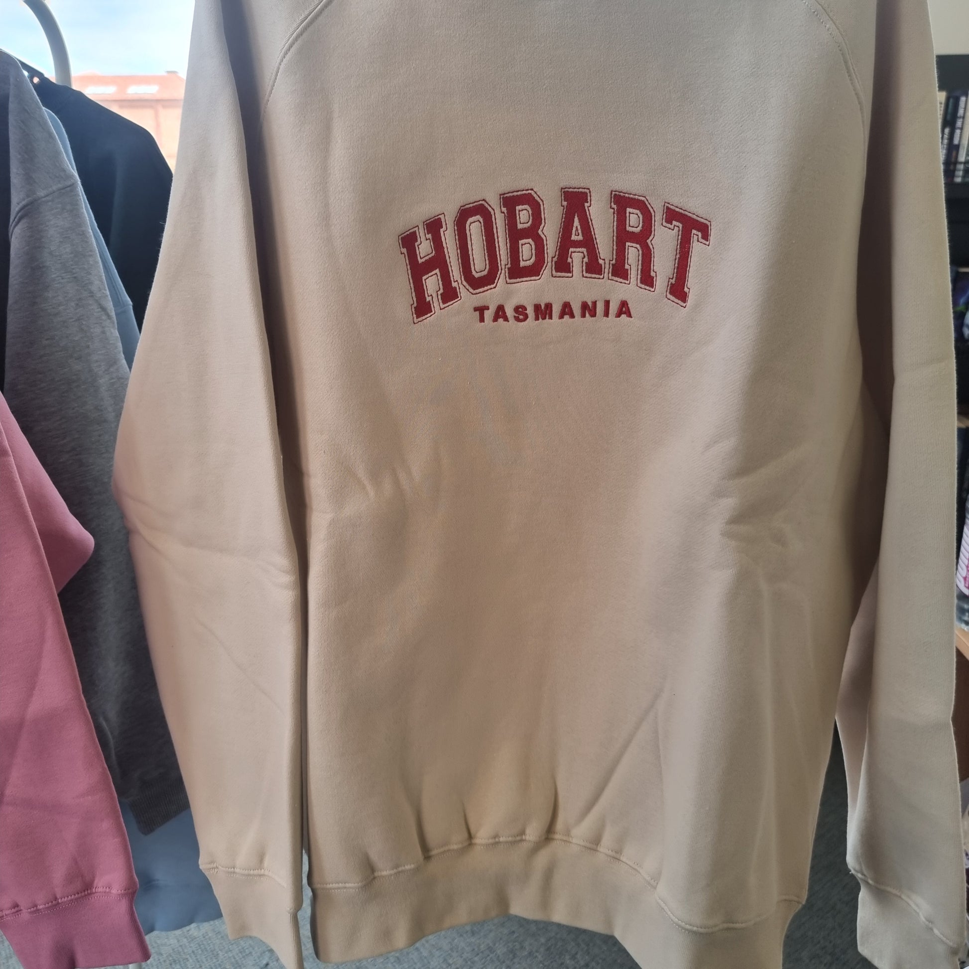 The Hobart Tasmania Round-neck Sweatshirt features expertly executed local embroidery that highlights Tasmanian craftsmanship. Designed for comfort and durability, this sweatshirt offers a refined fit with quality materials. It embodies regional pride and authentic style, making it an exceptional choice for those seeking locally made designs with a timeless appeal.