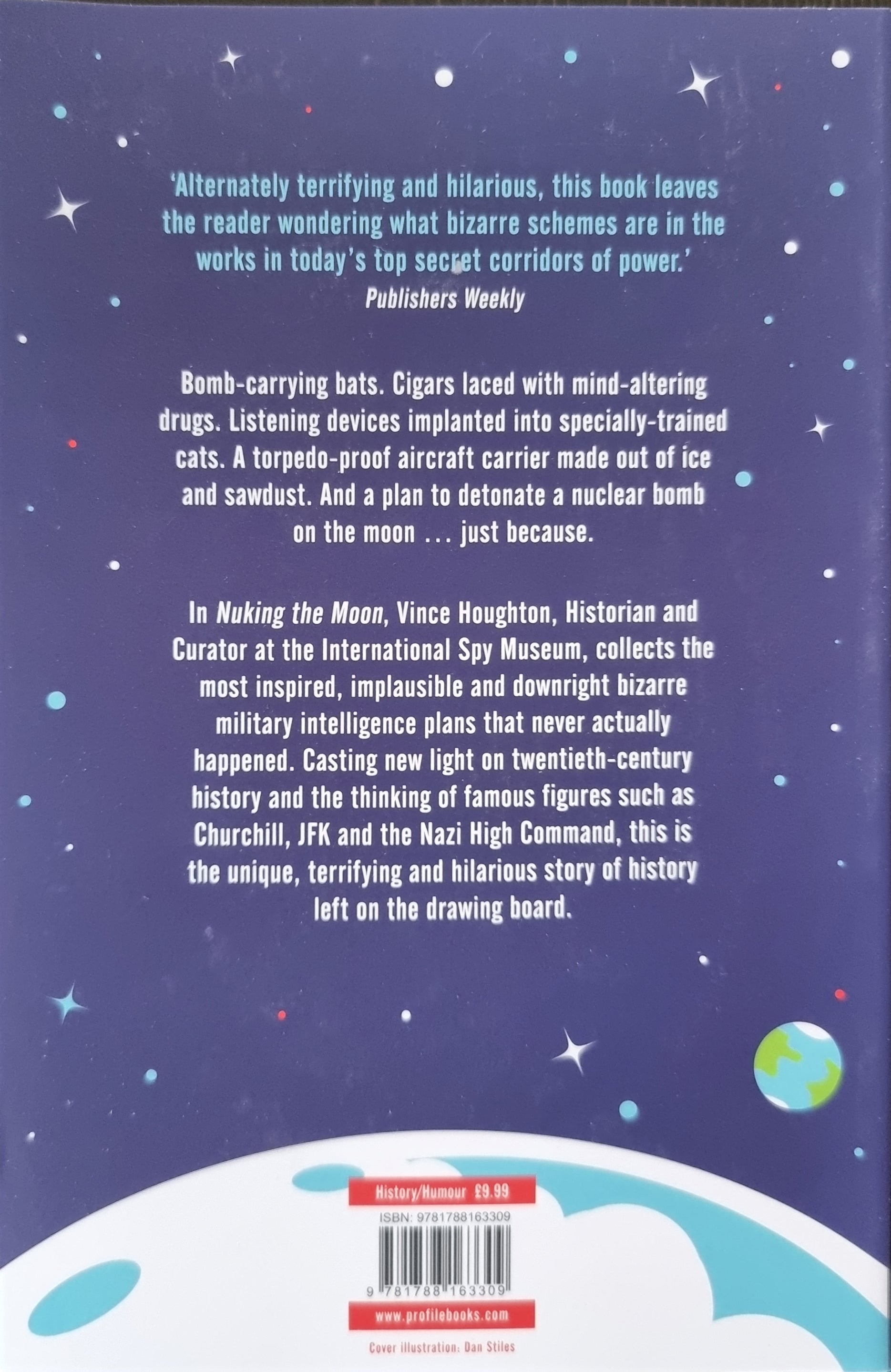 Dans Nuking the Moon , Vince Houghton, historien et conservateur à l'International Spy Museum, rassemble les projets de renseignement militaire les plus inspirés, invraisemblables et carrément bizarres qui n'ont jamais vraiment réussi à sortir de la planche à dessin. Des plus ambitieux aux plus sournois, ils éclairent une nouvelle facette de la guerre, révélant comment une combinaison de désespoir et d'innovation a conduit non seulement à des missions audacieuses et à de brillants progrès technologiques, mais aussi à d'innombrables plans et expériences qui ont échoué de façon spectaculaire.