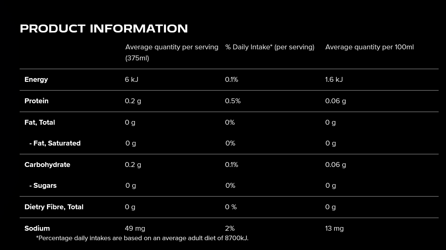 Carbonated Water , Caramel Color , Aspartame , Phosphoric Acid , Sodium Benzoate , Caffeine , Flavour (Natural) , Citric Acid , Acesulfame Potassium