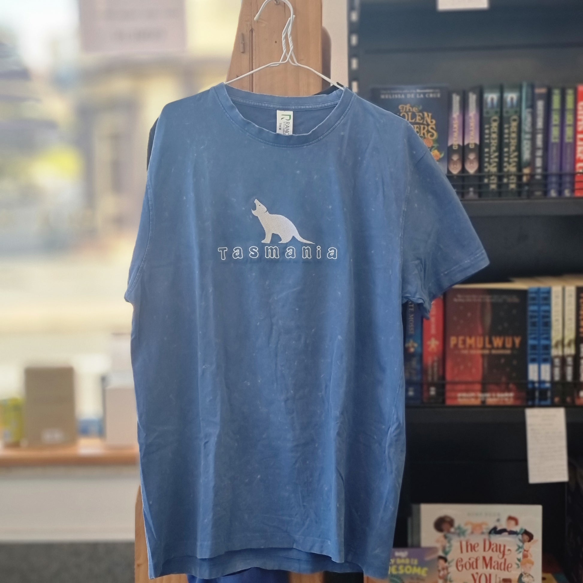 This Tasmanian Devil Embroidered T-shirt is locally made with a stone washed look. The Tassie devil embroidery adds a unique touch to this high-quality shirt, making it a must-have for any fan of these iconic animals. Comfortable, stylish, and supporting the local maker.