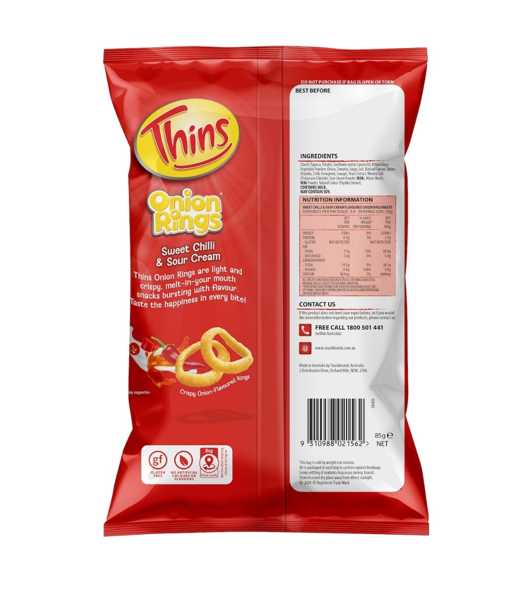 Thins Onion Rings Sweet Chilli & Sour Cream 85g