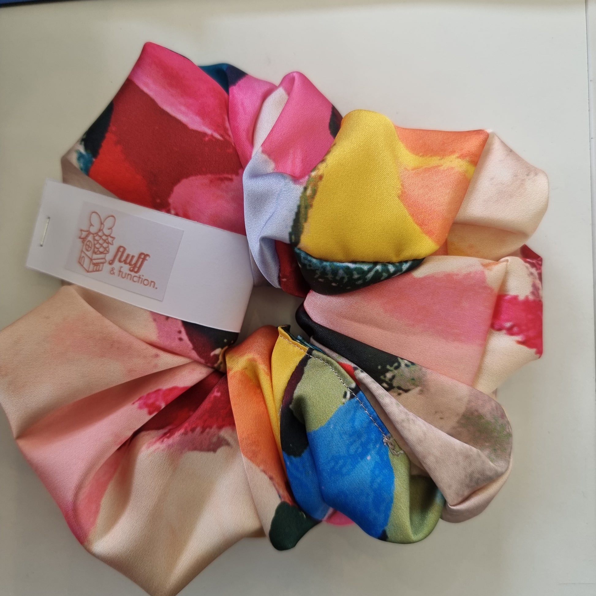 Expertly handcrafted and locally made in Tasmania from fabrics sourced all over Australia, our XL scrunchies are perfect for those with thick hair. Made without elastic, they offer both durability and sustainability. Say goodbye to flimsy hair ties and hello to a stylish and eco-friendly solution.